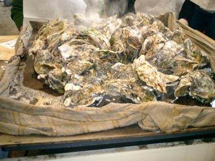 感激~♪鉄板で焼いているんだけど、かきがいっぱいで見えないよ!