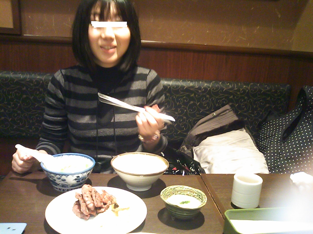 この日はユッケジャンラーメンを食べ大汗を流していました。カフェドクリエ内のトイレ見つかって良かったね!!