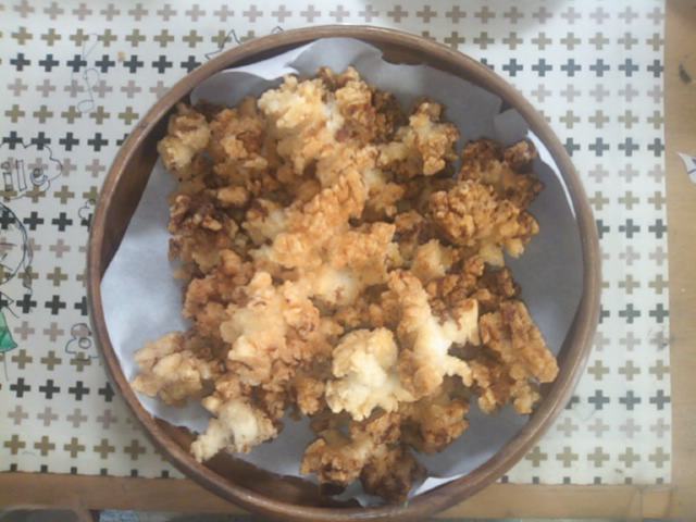 揚げたてにヒマラヤ岩塩としょうゆです。