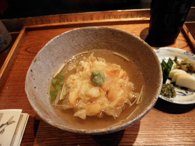 ふわふわのかき揚げの天茶は、小柱の甘いうまみがたまらない・・・